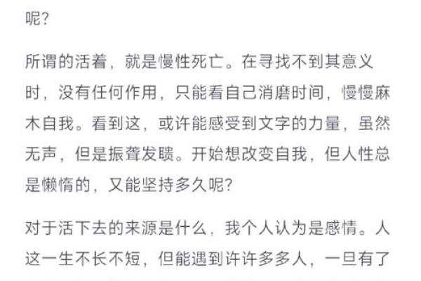 在这个瞬息万变的时代,许多人常常感到迷茫。我们生活在一个信息繁杂的社会中,选择的一切似乎总是那么不确定。面临工作压力、生活琐碎,我们有时候会产生深深的无力感。然而,正是这些经历塑造了我们坚韧的个性与对生命意义的反思。